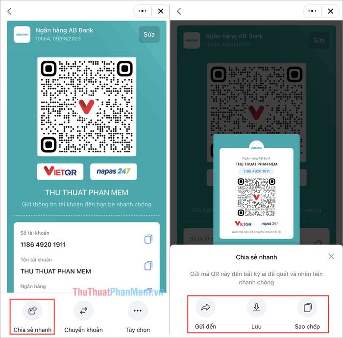 Not only stopping at storing QR codes, Zalo Pay also allows users to create transfer QR codes, QR codes linked to account numbers/banks/account holder names for quick transfers. Up to this point, 90% of bank account users choose to scan QR codes instead of manually entering account numbers or other methods. Scanning QR codes for transfers ensures 100% accuracy of the account number, no confusion, fast and convenient.