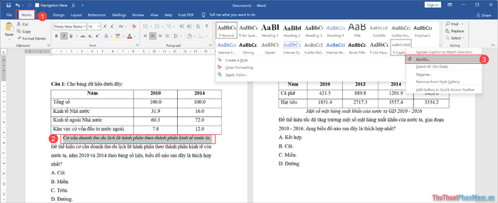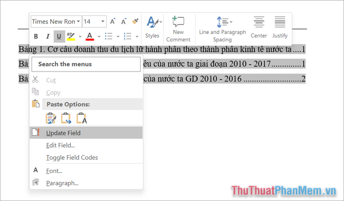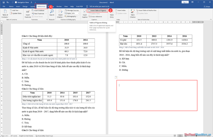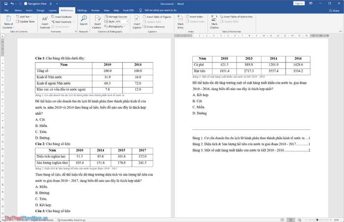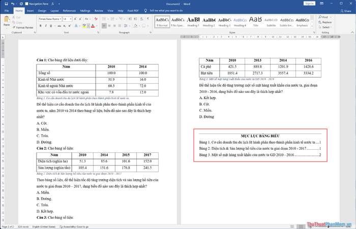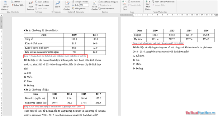 Note: Before creating a table of contents for charts and tables in Word, you need to name each table. When naming a table, keep it concise, understandable, and without adjusting fonts or margins, as we will do that in the following steps of the article.