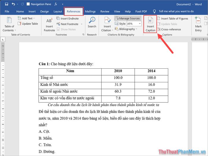 Step 1: Choose the References → Insert Caption tab to create a table of contents for your charts.