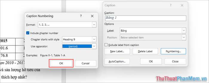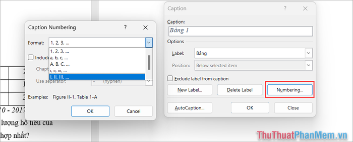 - Include chapter number: Number based on the table of contents and image order (Based on Heading). Example: If the table is numbered as the 3rd table in the 2nd section of the article, it will be: Table 2.3 (section in the table of contents, order in the image).