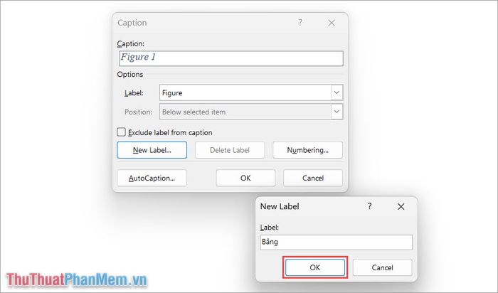 Step 3: Now, you need to name the newly created label. Since we are creating a table of contents for charts, the most suitable label name would be Table. Additionally, you can set other names based on your needs, but remember that this Label name will be displayed before the caption/table name.