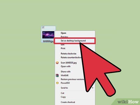 Locate your saved photo, right-click it, and choose 'Set as Desktop Background'.