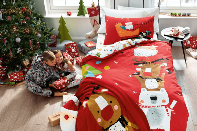 - Or change the child's bedsheet to one with Christmas patterns