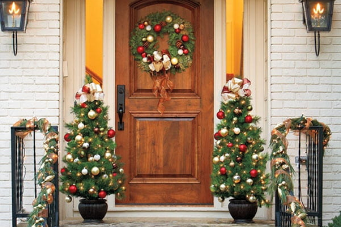 Christmas Decoration in Front of the House not only makes the small house more beautiful but also serves as a polite welcome to guests. The decoration is quite simple, you can try some ideas like: