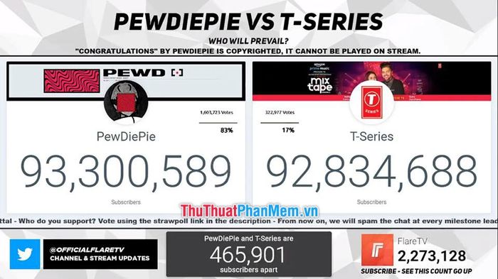 PewDiePie, a personal channel of Felix Arvid Ulf Kjellberg from Sweden, frequently uploads videos about horror games and various other game genres. Recently, he has also ventured into comedy and satire. With the largest number of Subscribers on Youtube to date (although closely pursued by T-Series) with over 93 million Subscribers, and this number continues to increase every second, PewDiePie earns nearly twenty million dollars per year (equivalent to around 450 billion Vietnamese dong).