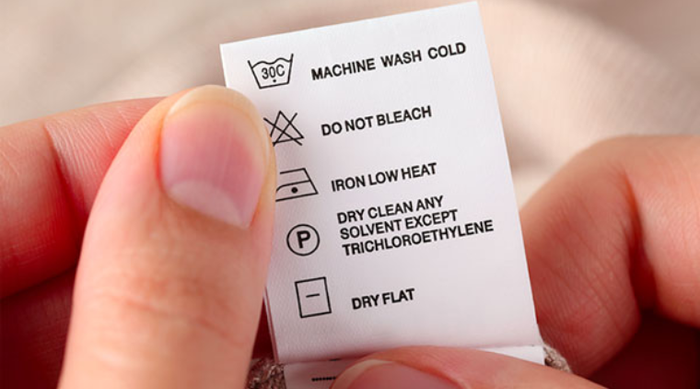 Manufacturers attach clothing symbols in easily visible locations such as the neckline, waistband, or hem. Here, you'll find essential information about the brand, fabric type, size specifications, and care symbols for washing, ironing, drying, and more, ensuring proper garment maintenance.