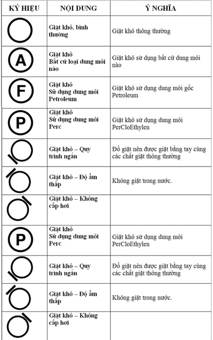 Garments with dry cleaning symbols (often found on wool or silk items) require washing with a specialized solution. Familiarize yourself with these dry cleaning symbols: