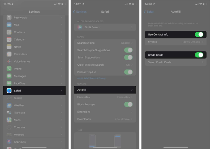 - Step 2: Next, go into the Autofill section and touch the saved Credit Cards.