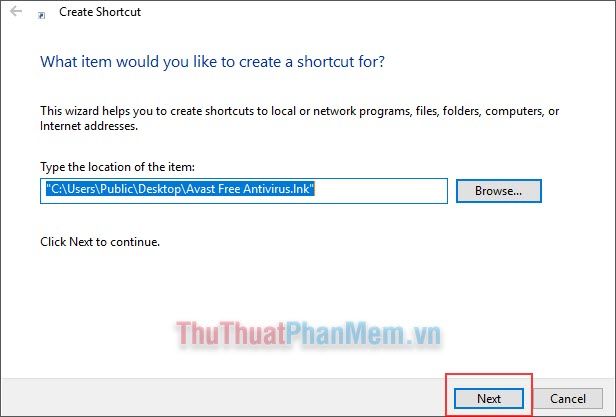 Step 2: A Create Shortcut window will appear. Click Browse… and choose the file, folder, etc., you want to create a Shortcut for.