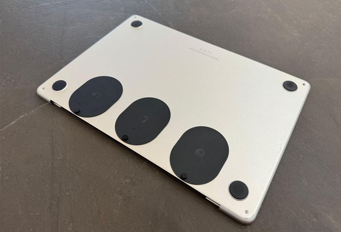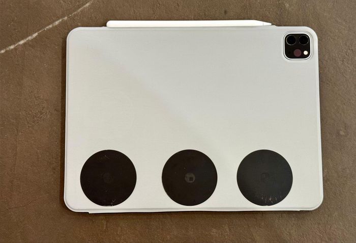 Federico Viticci attached three magnetic stands to the bottom of the MacBook Air, enabling the iPad to adjust to a wider viewing angle.
