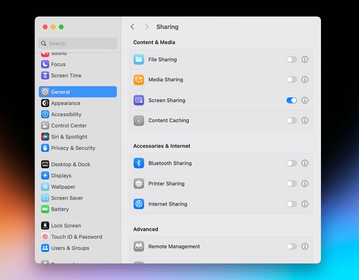 Activate screen sharing mode to use the MacBook without an attached screen.Next, he wanted to ensure he could use Sidecar – Apple's tool allowing the iPad to function as a Mac screen – even without the main display.