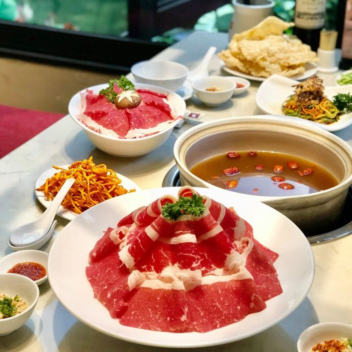 Alongside those are hotpot sets with trout, double fish, or grouper. And of course, there's no shortage of premium American beef slices imported from abroad. One notable set is the Wagyu beef hotpot set. In this set menu, you can choose from Wagyu beef tenderloin, Wagyu beef ribeye, premium Wagyu beef fillet, or delicious boneless Wagyu beef ribs.