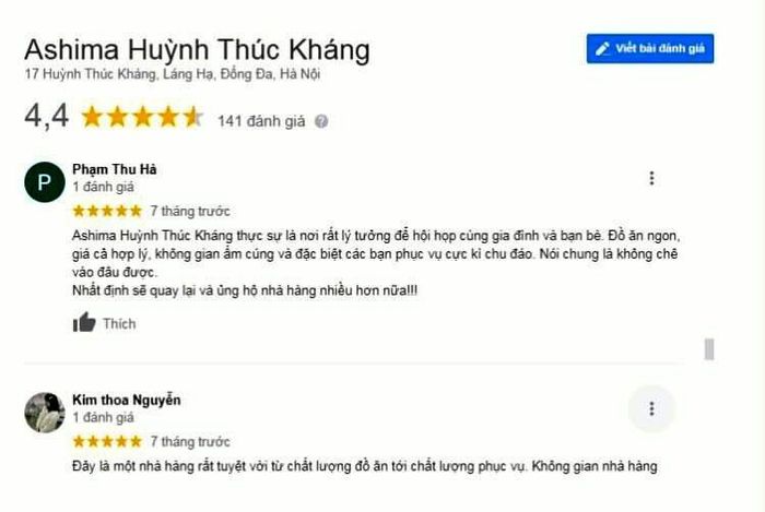 5. Customer Reviews at Ashima Huynh Thuc Khang Mushroom Hotpot