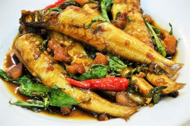 Indulge in the flavorsome Ricefield fish braised with pork belly
