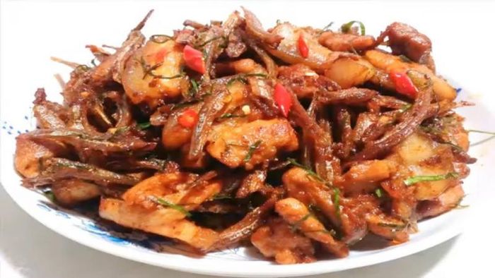 Tuna in fish sauce, chili, and garlicThe intriguing blind fish, a resident of freshwater habitats like ponds and rice fields, possesses a distinctive flavor and scales. Blind fish serves as a delicious delicacy with fragrant and nutritious flesh. It aids in tonifying the middle, replenishing qi, and promoting urination. Particularly beneficial for cardiovascular health. Note: Individuals with urea, high blood pressure, or liver coma should avoid consuming blind fish.