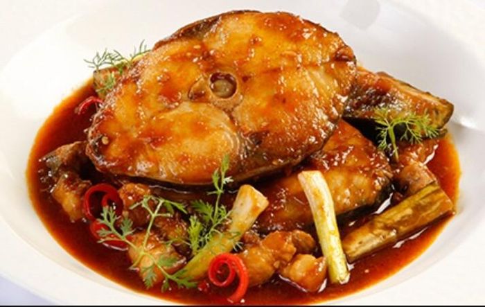 Indulge in the delightful Keo fish braised with corianderSavor the aroma of Braised Salmon
