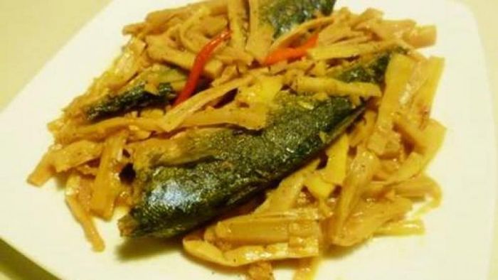 Indulge in the savory dish: Silver carp braised with bamboo shoots