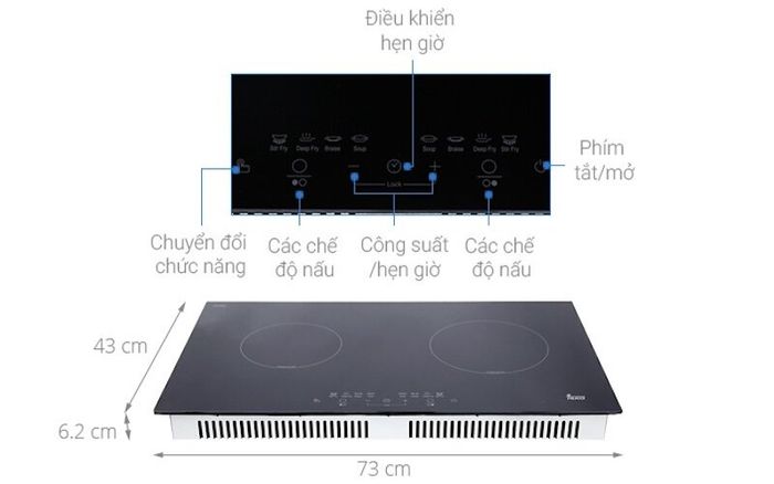 Teka IBC 7320 D is designed to provide convenience and safety for users. The product has many smart features such as timer function, hot surface warning, control panel lock, automatic shutdown when overheating. This aims to optimize cooking and ensure safety during use.