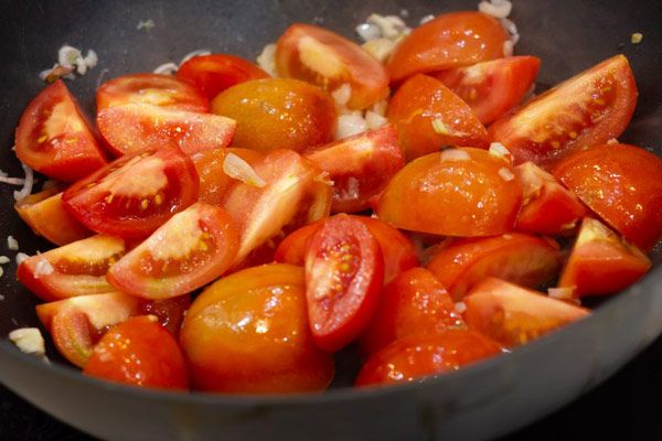Heat a pan on the stove, add a little cooking oil, wait for the oil to heat up, then add the thinly sliced dry onion and fry until fragrant. Next, add the clams and tomatoes, stir-fry together, add an extra tablespoon of salt for a richer flavor.