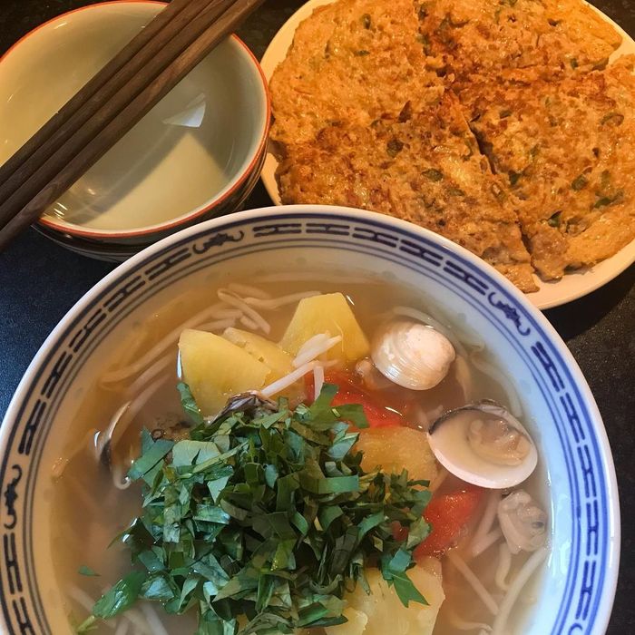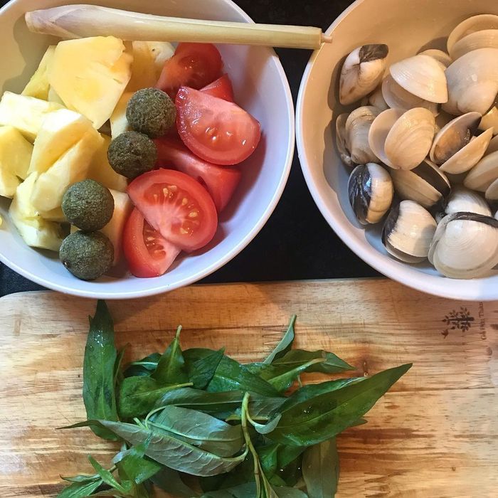 Clam sour soup has a sweet taste from the meat and clam broth, the gentle sourness from the pineapple and vinegar helps to dispel the summer heat. The sour and fragrant clam soup is especially delicious when eaten with rice.