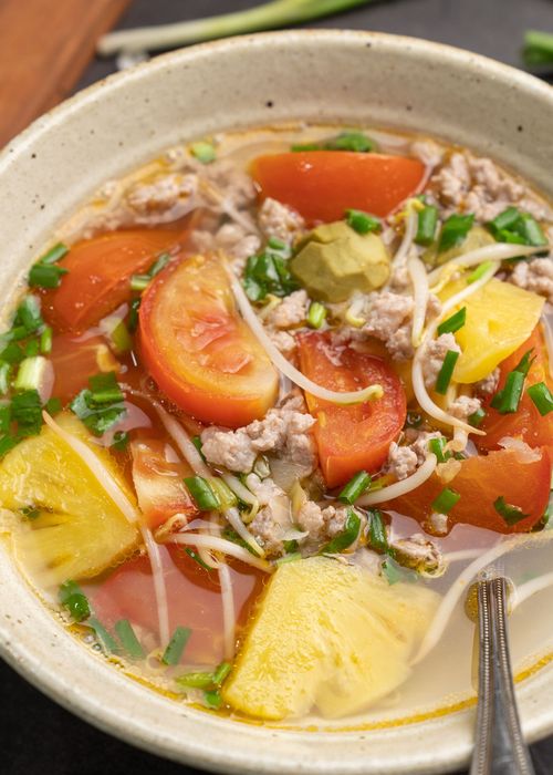 Pineapple sour soup with minced meat and tomatoes is made with simple ingredients that are easy to prepare and delicious to eat. It only takes about 15 minutes to cook this fragrant and tasty soup.