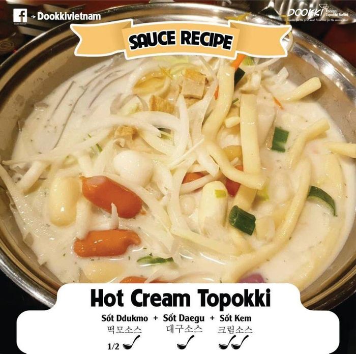 Recipe: 1 tablespoon Dookki sauce + ½ tablespoon GungJung sauce + ½ Daegu sauce + 2 tablespoons cream