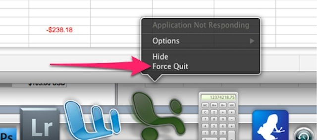 Step 2: When the context menu appears, click on Force Quit to close the application.