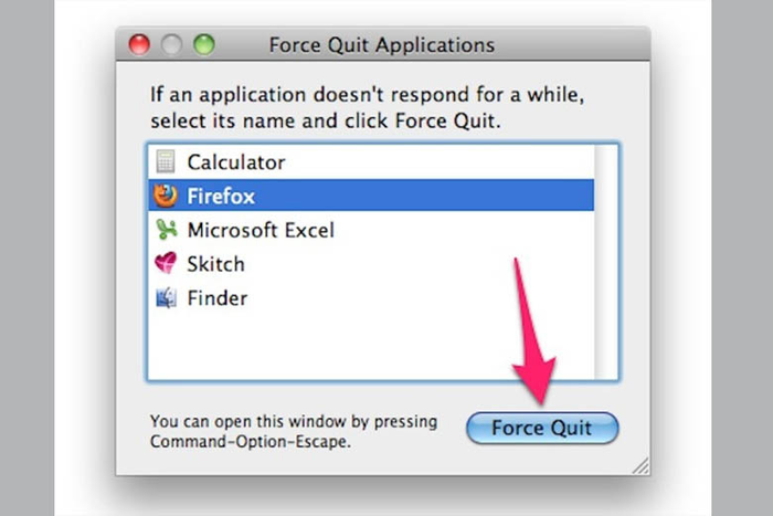 Select the application and press the Force Quit button to close it.Note: In case the mouse is unresponsive, users can use the keyboard arrow keys for selection. Alternatively, if the screen interface displays the window of the application to be closed, simply hold down the Command + Option + Shift + Esc keys for a minimum of 3 seconds to completely close the application.