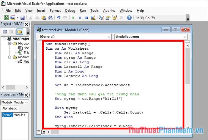 Step 3: Copy the following code snippet into the middle of the Sub findduplicatedata()......End Sub block.