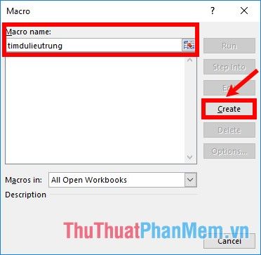 Step 2: Input a name for the Macro (without accents) into the Macro name box and click Create.