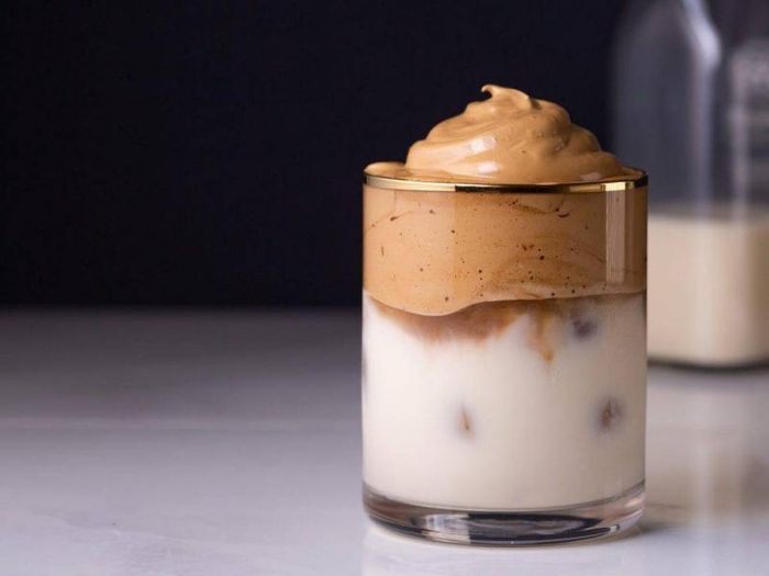 - Step 3: Place ice cubes in a glass, pour in 200 ml of fresh milk (skip the ice if you prefer it hot), then spoon the whipped coffee mixture on top, and delicately swirl for an aesthetically pleasing presentation.