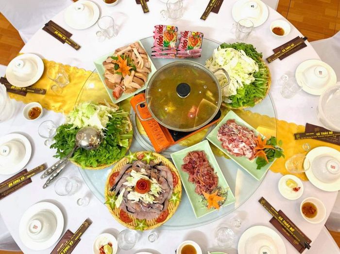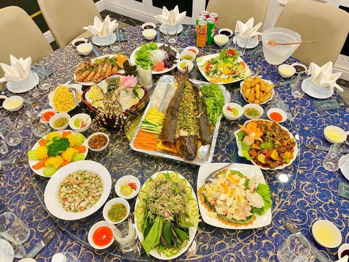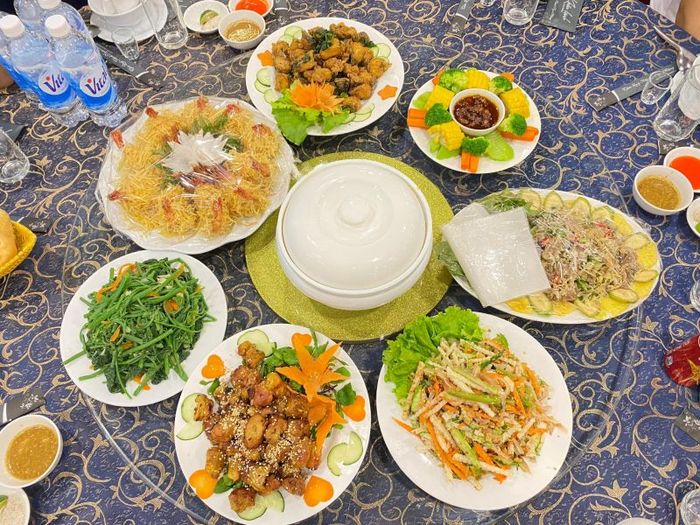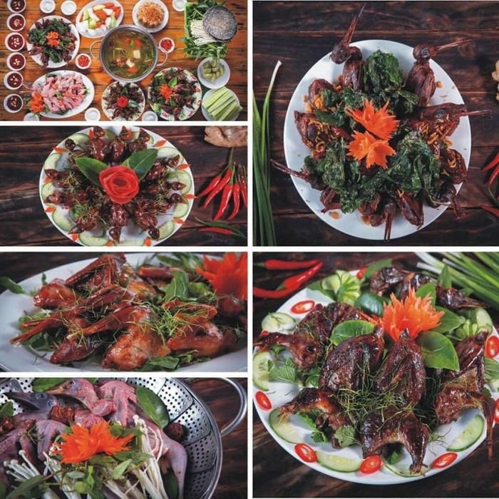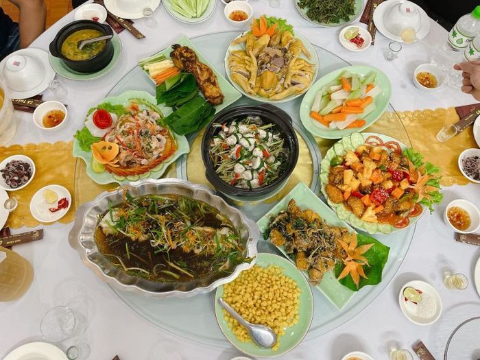 Vietnamese Cuisine Restaurant boasts a spacious and airy space, with a maximum capacity of 350 guests. The large banquet hall, suitable for groups of 50-150 guests, and small VIP rooms equipped with air conditioning are ideal places for guests to enjoy delicious meals. Vietnamese Cuisine Restaurant offers a diverse menu with many specialty dishes tailored to various customer groups. Some notable dishes include bird porridge hotpot, roasted bird with honeycomb leaves, minced bird with puffed shrimp, hill chicken, H'mong chicken, stream fish, river fish, mountain goat, wild pig, buffalo, mountain snail, and more. With a diverse menu and reasonable prices, there are plenty of options to choose from.