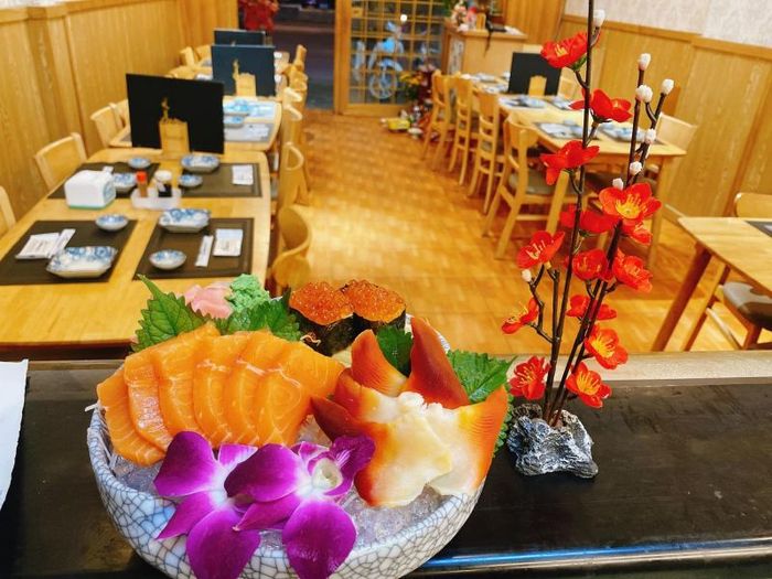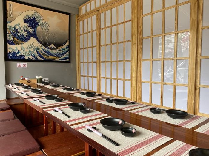 Moreover, the elegant arrangement creates a luxurious and cozy atmosphere. The colorful curtains, along with the prominent red lanterns and the image of a house beside a cherry blossom tree, bring a unique charm, making Tokyo Sushi resemble a “Mini Japan in the heart of Da Lat.” Due to its visually appealing space, the restaurant is perfect for family gatherings, business meetings, and romantic dates.