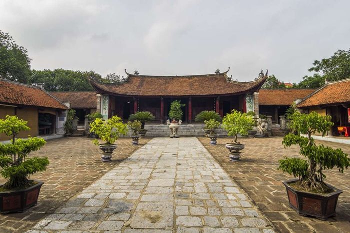The An Dương Vương Temple, also known as the Upper Temple, is built on a hill that was once the palace of the king. The temple faces south, and its main structures are located on the Dũng Đạo axis (the Divine Path). Inside the temple, there is a bronze statue of An Dương Vương along with numerous historical artifacts and antiques made of wood, porcelain, and fabric.