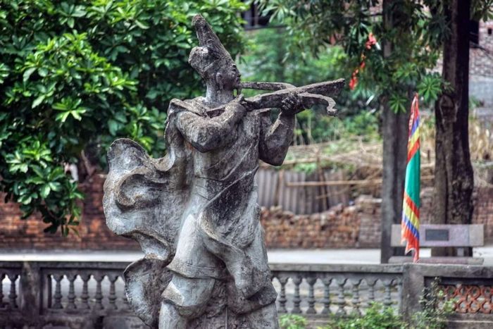 In commemoration of his contributions, the locals cast a statue and built a small-scale temple. Cao Lỗ Temple, situated by a pond, features a statue of Cao Lỗ wielding a bow. Inside the temple, numerous bronze arrows excavated by archaeologists are still preserved.