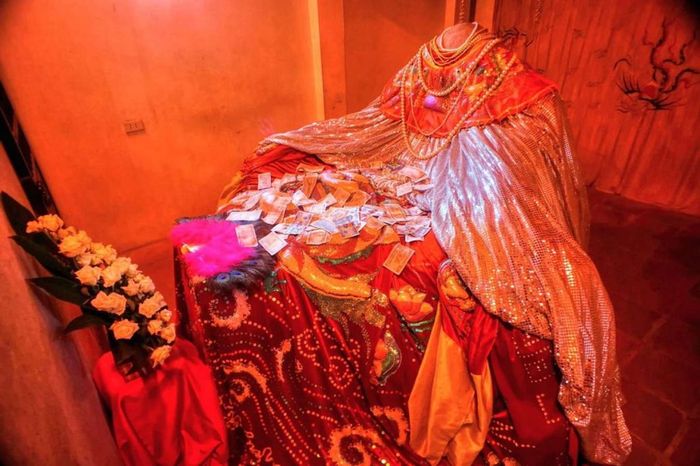Am Bà Chúa, also known as Mỵ Châu's Tomb, is a structure located behind the thousand-year-old banyan tree. Inside the shrine lies a statue of Mỵ Châu - a natural stone resembling a headless human figure. Legend has it that after her death, Mỵ Châu transformed into a large drifting stone, eventually washing up at Đường Cấm Beach, east of Cổ Loa Citadel. Locals brought nets to carry it, but as they reached the banyan tree, the net broke, causing the stone to fall. Witnessing this, the locals built a shrine there, known as Am Bà Chúa.