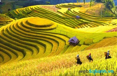 During the rice season in Sapa, there are also many tourists visiting. You'll witness the sprawling terraced fields, glistening in golden hues, resembling a painting. The best time to visit the terraced fields is usually from mid-September to mid-October, depending on the ripening of the rice each year. However, if you want to see green rice, or rice in full bloom, you can visit during spring or summer. Each season, the terraced fields in Sapa have their own unique beauty.