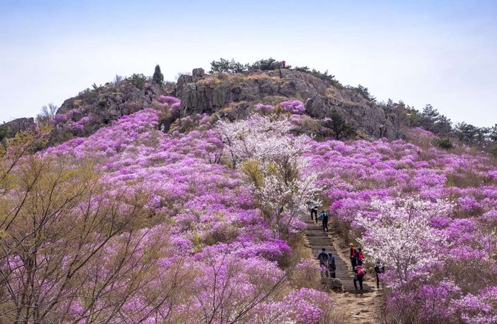 To fully explore the vibrant and colorful beauty of South Korea in spring, visitors should not miss the vivid landscape of Yeongchwisan Mountain. Located in Yeosu City, starting from April, the mountain is adorned with the purple hues of azaleas, captivating countless travelers.