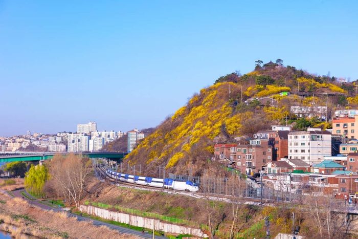 Another beautiful spring sightseeing spot in Seoul city is Eungbong Mountain. If you love the warm yellow hue of Korea's iconic forsythia flowers, then the period from March to April each year is the blooming season.