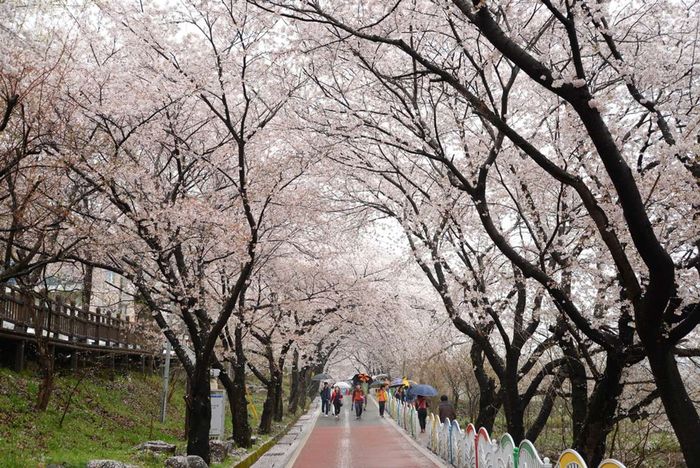 Ilsan Lake Park is located at 595 Hosu-ro, Ilsandong-gu, Goyang-si, Gyeonggi-do Province. It's the largest artificial lake in Asia, boasting over 1,800 cherry blossom trees, and a diverse array of other flowers such as weeping willows and forsythias.
