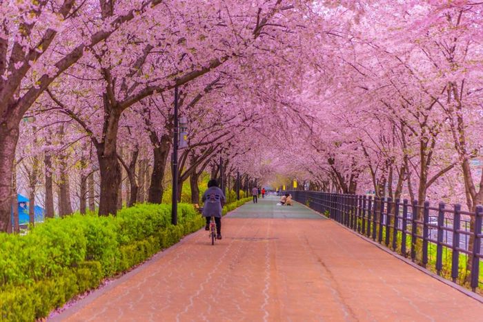 Yeouiseo-ro, situated behind the National Assembly Building on Yeouido Island, along the Han River in Seoul's capital city, is a renowned cherry blossom viewing spot. Spanning over 1.7km, this avenue is famous for its cherry blossoms. Every spring (starting from mid-April), more than 1,886 cherry blossom trees along Yeouiseo-ro burst into full bloom, painting a corner of the sky white.