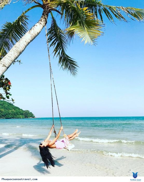 Coconut tree by the sea tied with a swing is incredibly beautiful