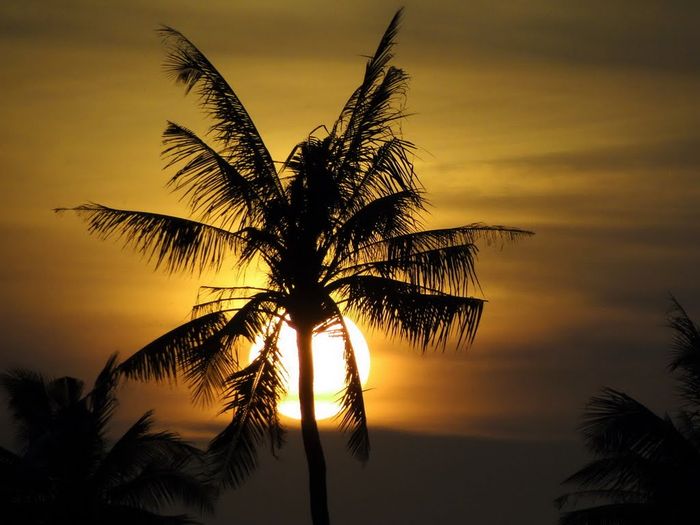 Coconut tree amidst the glow of sunset