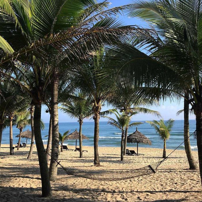 Coconut trees with hammocks strung on the beach are incredibly beautiful