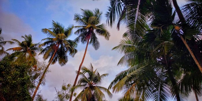 The towering coconut trees reaching the sky are truly beautiful