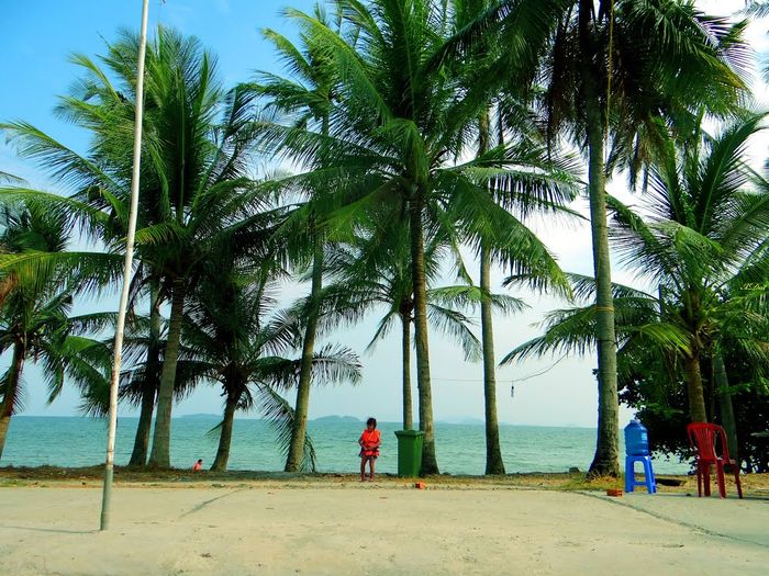 Images of coconut trees near the beach