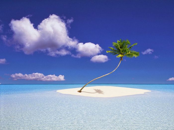 Solitary coconut tree amidst a deserted island