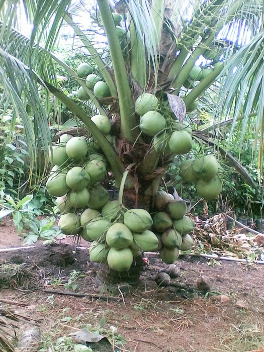Short coconut tree roots laden with fruits