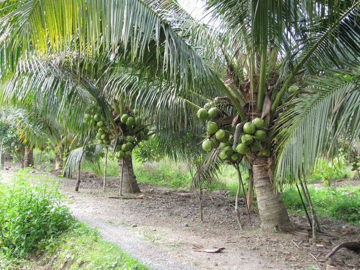 Images of heavily laden coconut trees