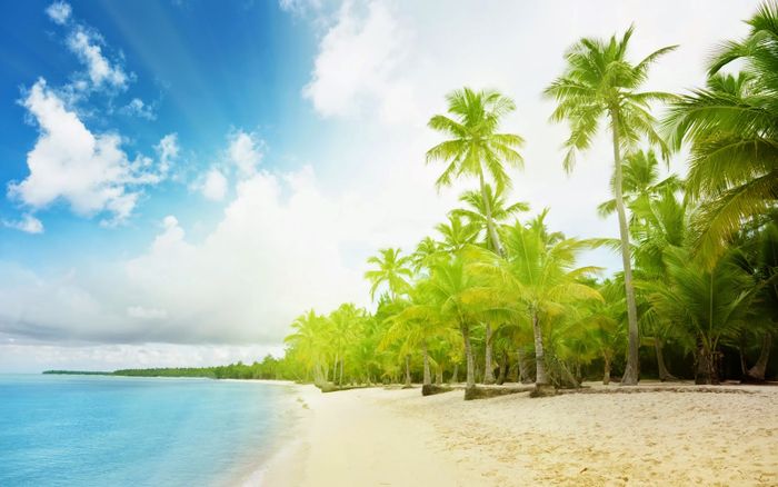 Enjoy the beauty of nature with azure seas, white sands, and coconut groves